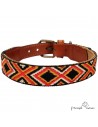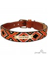 - Correa para perros fabricada en piel natural de primera calidad combinada con una cinta étnica de poliamida de diseño luna cosida artesanalmente.